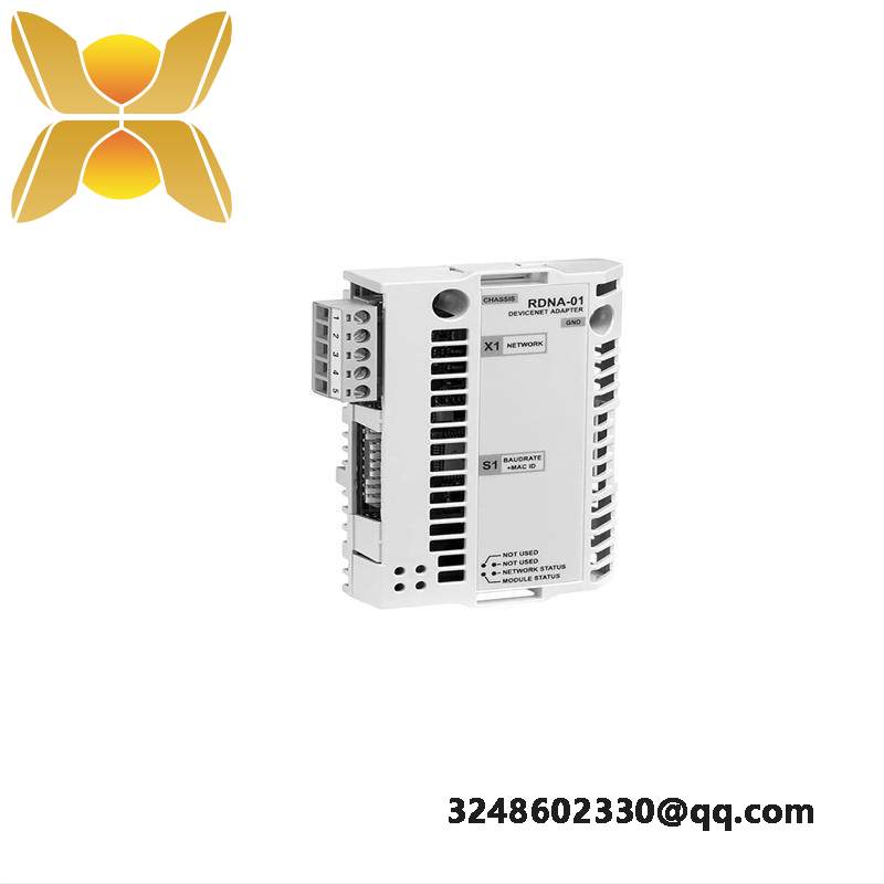 The ABB RDNA-01 DeviceNet adapter module is designed to enhance industrial automation systems by facilitating seamless communication between devices, improving efficiency and connectivity.